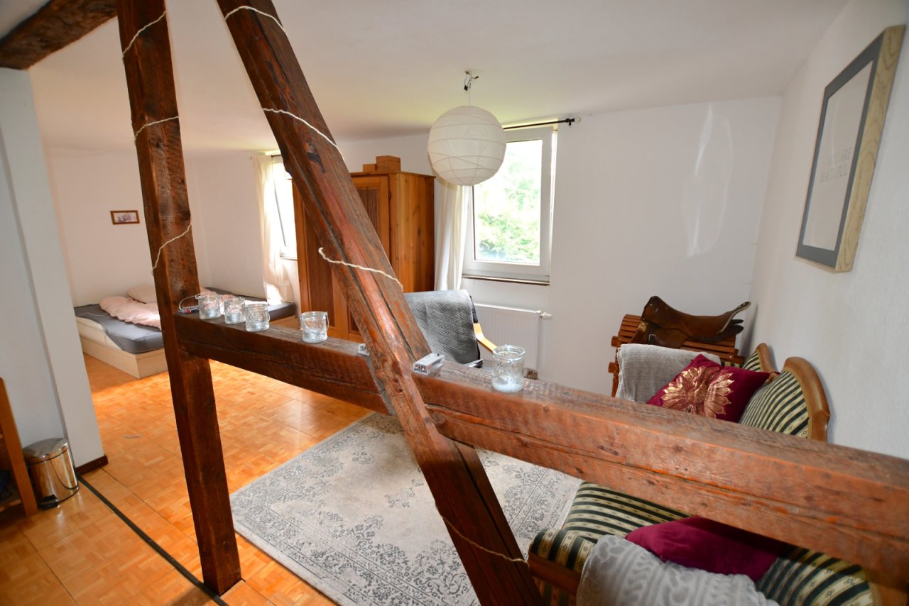 Das liebevoll erhaltene Einfamilienhaus mit Einliegerwohnung und Scheunen aus dem Jahr 1826 wurde in massiver Bauweise errichtet und verfügt im Inneren über sichtbares Fachwerk, das für ein gemütliches Wohngefühl sorgt. Die Immobilie ist teilunterkellert, das Dachgeschoss ist ausgebaut.