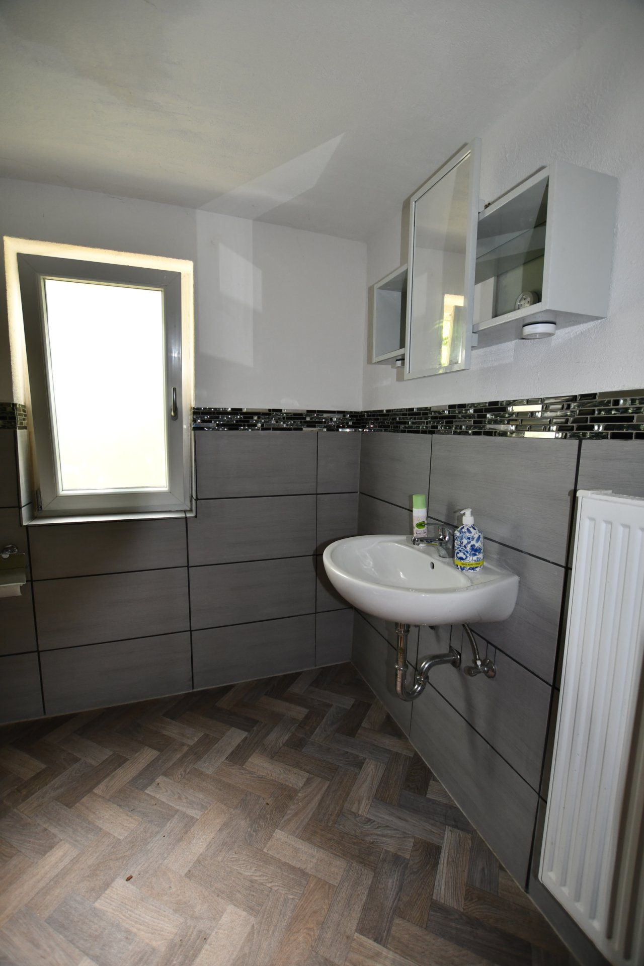 Die Badezimmer im Haupthaus sind von ca. 2020. Das Badezimmer in der Einliegerwohnung ist von 1990.