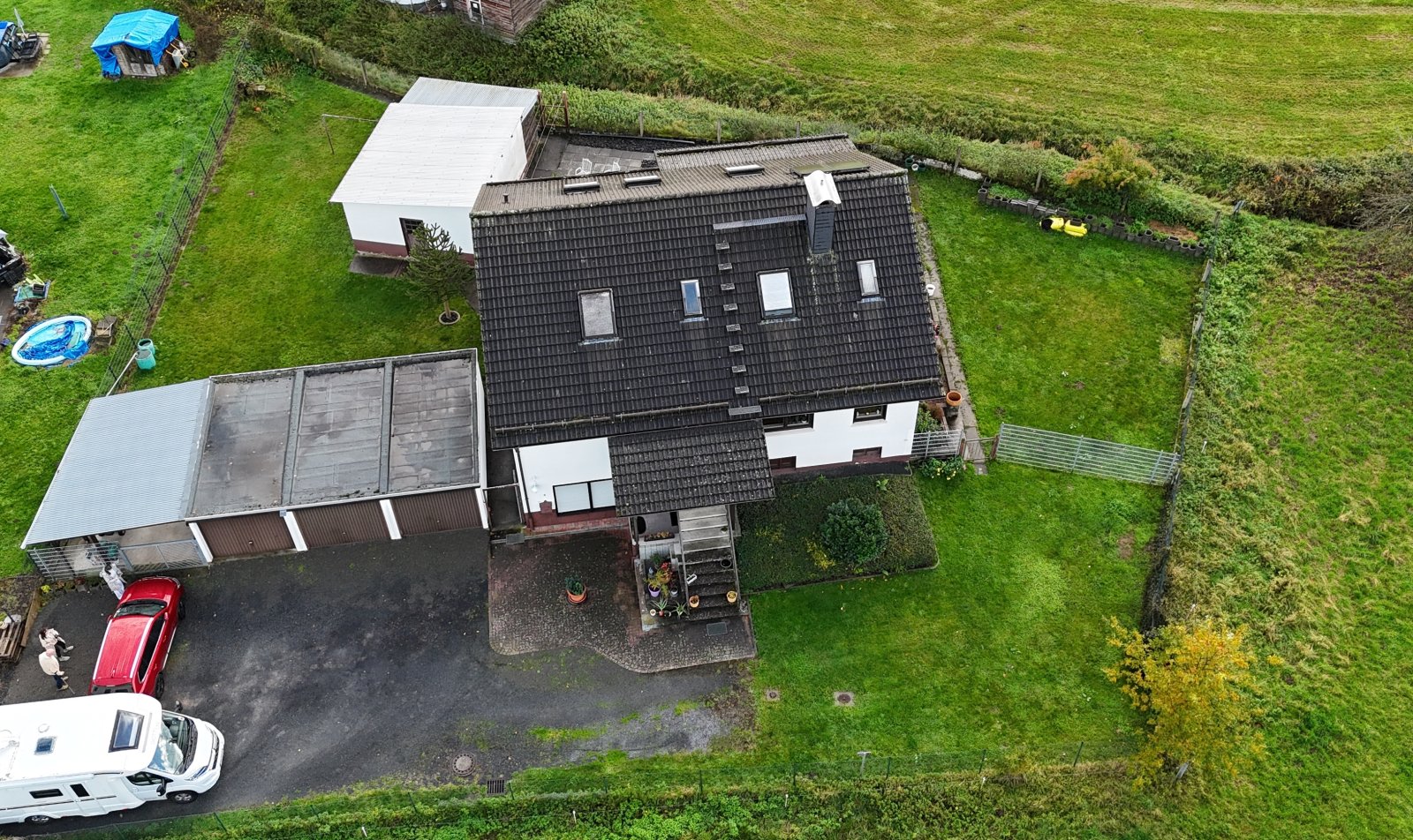 Dieses großzügig geschnittene Einfamilienhaus mit Garten wurde 1967 in einer ruhigen Sackgasse massiv erbaut. Es ist voll unterkellert und auch das Dachgeschoss wurde komplett ausgebaut. Das ca.1033 qm große Grundstück bietet zudem 3 Garagen, ein Carport, Stellplätze und ein Gartenhaus. Zwei der drei Garagen wurden 1984 erbaut und die dritte Garage im Jahr 1992.