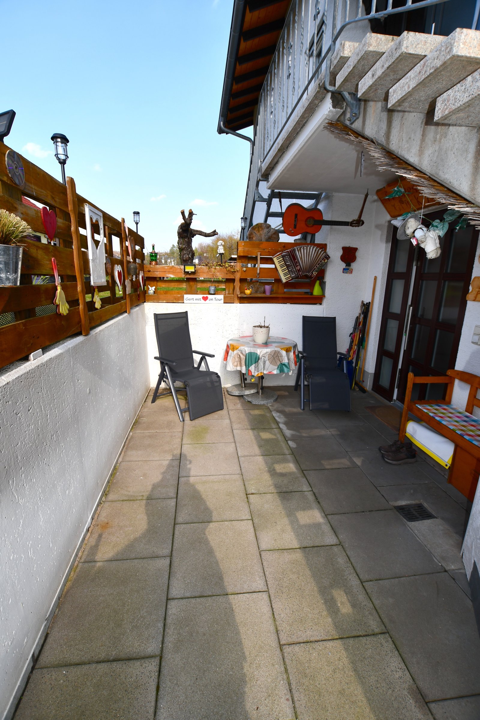 „Genießen Sie die Nachmittagssonne auf der eigenen Terrasse direkt vor der Tür – ein idealer Rückzugsort für gemütliche Stunden im Freien.“